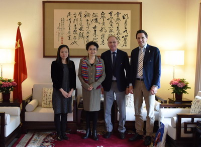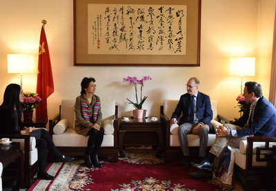2017年4月19日,驻苏黎世兼驻列支敦士登公国总领事高燕平在总领馆办公楼会见瑞士阿罗萨市市长施密特。