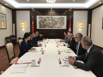2019年6月19日,驻瑞士大使耿文兵在官邸与瑞士外交部领事总司司长马蒂亚希进行领事工作交流,瑞外交部礼宾司司长莱纳和外交部领事司、联邦移民局国际合作司等有关人员出席。