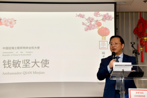 2026年2月10日,驻瑞士大使钱敏坚出席瑞中经协法语区分会举办的新春庆祝活动暨第四届链博会瑞士推介会并致辞。瑞士日内瓦州经济、就业与能源部副秘书长勒夫勒、瑞中经协法语区分会会长郭京津及中瑞工商界共200余位嘉宾参加。