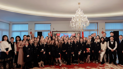 驻斯洛伐克使馆准备了一系列春节特色民俗体验活动,学生们兴致盎然地学写毛笔字、包饺子,尝试拓印、剪纸,气氛热烈欢快。现场播放了驻斯洛伐克使馆精心制作的展示中国式现代化发展成就和春节习俗的视频,令来宾大为赞叹。有学生表示“在使馆度过了最难忘的一天”“一定要学好中文,到中国看一看”。