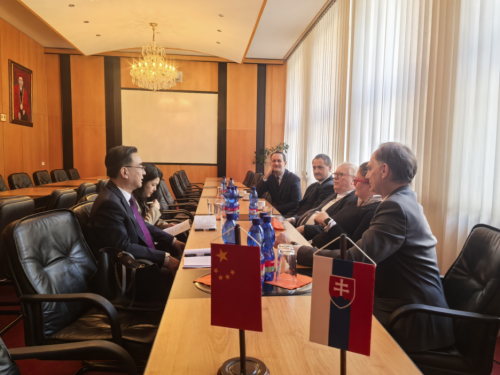 2026年3月20日,驻斯洛伐克大使蔡革访问布拉迪斯拉发考门斯基大学,并同副校长维格拉索娃、副校长马萨里克等进行座谈。