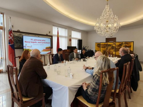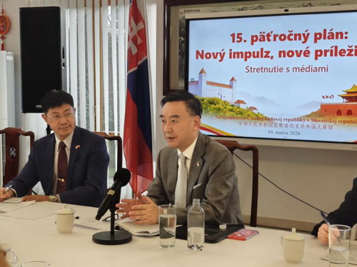 2026年3月19日,驻斯洛伐克使馆举办“十五五规划——新动能,新机遇”全国两会精神媒体交流会,邀请斯洛伐克电视台、创意网络电视台、《公共事务》杂志、新话语俱乐部等媒体和智库代表参加,驻斯洛伐克大使蔡革出席交流会。