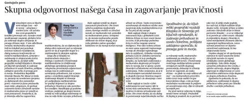 2026年1月28日,驻斯洛文尼亚大使康艳在斯主流媒体《劳动报》发表署名文章《共担时代责任,捍卫公平正义——中斯携手践行真正多边主义》,全文如下: