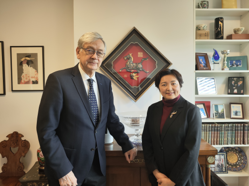2026年1月29日,驻斯洛文尼亚大使康艳拜会斯前总统图尔克。双方就双边关系、国际形势和全球治理等议题深入交换意见。