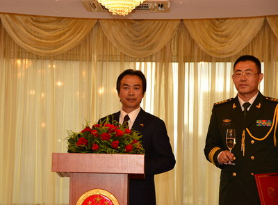 再一次感谢大家出席今晚的招待会,和我们共同庆祝中国人民解放军建军九十周年!