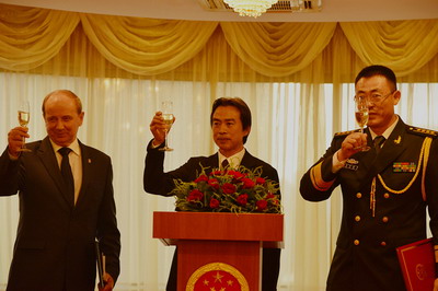 招待会气氛热烈友好,与会嘉宾对中国人民解放军建军90周年以及中国军队和国防建设取得的成就表示钦佩,祝愿中国繁荣发展,军队日益强大,祝愿两国和两军关系更上一层楼。