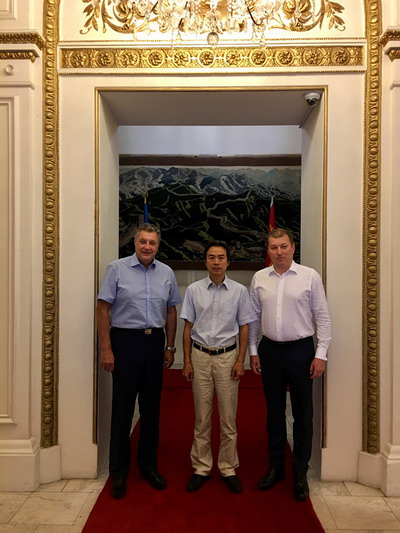 2017年8月1日,驻乌克兰大使杜伟会见乌中实业家协会乌方主席罗伯特、协会副主席、乌克兰前驻华大使利特文。