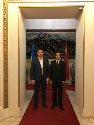 2017年8月29日,驻乌克兰大使杜伟会见来使馆拜会的乌克兰赫尔松州州长戈尔杰耶夫。