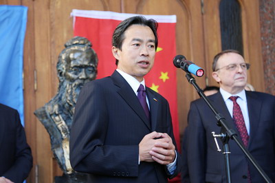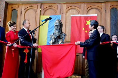 2017年9月29日,驻乌克兰大使杜伟出席基辅国立语言大学孔子像揭幕仪式并致辞。乌青年体育部副部长莫夫强、教科部副部长格列巴、前文化部长利霍沃伊、中国驻乌克兰媒体记者及基辅国立语言大学孔子学院师生共100余人参加活动。