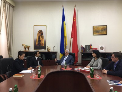 2017年10月10日,驻乌克兰大使杜伟赴乌克兰—中国协会拜会乌克兰前总统克拉夫丘克。