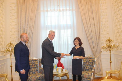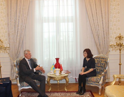 2017年10月12日,驻敖德萨总领事赵向荣在总领馆会见乌克兰外交部驻敖代表勒热皮舍夫斯基。