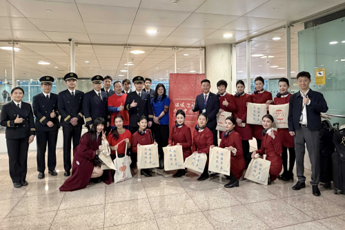 2026年2月17日,大年初一清晨,驻巴塞罗那总领事孟宇宏率工作人员赴机场与中国国际航空公司、深圳航空公司巴塞罗那营业部代表一起迎接来自祖国首都北京的马年首个航班,向旅客致以新春问候和祝福并慰问机组人员,开启“温暖迎春·平安万里行”活动,加强领事保护宣传,共庆中国年。