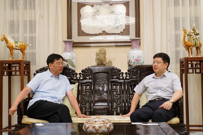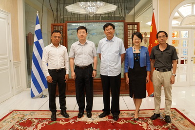 2017年8月17日,驻希腊大使邹肖力在官邸会见到访的中国新闻社社长章新新一行。