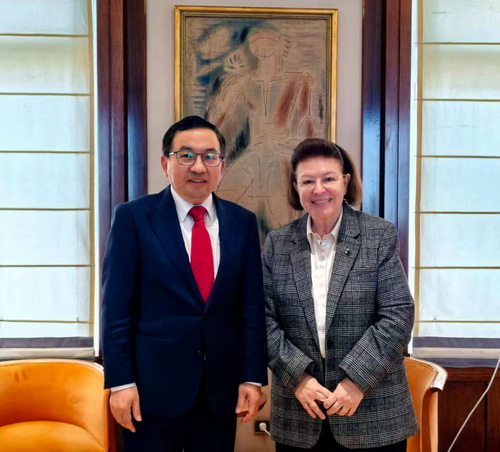 2025年12月9日,驻希腊大使方遒拜会希腊文化部长门佐尼,就深化两国人文交流合作交换意见。