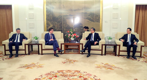 2018年3月22日,国务委员兼外交部长王毅在北京会见来华出席中国同维谢格拉德集团首次政治磋商的四国副外长。