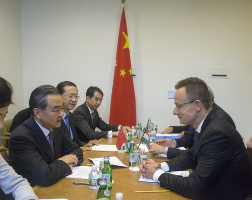 当地时间2018年9月25日,国务委员兼外长王毅在纽约出席联合国大会期间会见匈牙利外长西雅尔多。