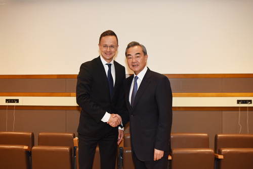 当地时间2019年9月23日,国务委员兼外长王毅在纽约出席联合国大会期间会见匈牙利外长西雅尔多。