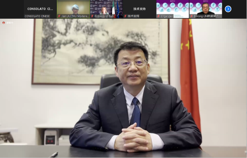 2022年5月12日,驻米兰总领事刘侃应邀线上出席清华大学和米兰理工大学联合举办的“共话奥运 从北京到米兰——可持续的设计创新”中意交流活动并简短致辞。