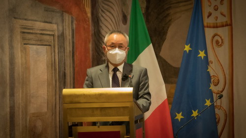 中国老话说,“前人栽树,后人乘凉”。我由衷感谢意中协会过去50多年来为推进中意交流与合作所做的不懈努力和重要贡献。历史已经证明并将继续证明,两国国情、社情、民情的不同不是彼此友好交往的阻碍,而是让两国人民不断深入了解彼此、加强彼此理解和借鉴的原动力。中国驻意使馆和我本人将一如既往发挥好桥梁作用,助力中意两国全面战略伙伴关系再上层楼,促成更多友好交流与合作。我们也由衷希望,意大利各位议员、各界人士在推动中意及中欧关系方面继续发挥更多建设性作用,继承、发扬科隆博参议员开拓的事业。相信在双方的共同努力下,中意关系的明天会更美好!中欧关系的明天会更美好!