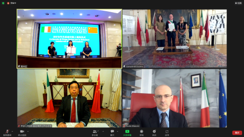 王文刚总领事在致辞中表示,青羊区和利沃诺市人员往来频繁,合作基础扎实。新冠肺炎疫情暴发后,双方守望相助、共克时艰,充分体现出双方民众心心相惜、患难与共的美好情谊,有力印证着中意两国携手并肩、同舟共济的坚定决心,生动诠释了人类命运共同体的深刻内涵。中国和意大利同为历史文明古国,两千多年交往史为两国培育了互尊互鉴、互信互谅的共通理念,成为两国友好交往的重要保障。青羊区和利沃诺市缔结友好合作关系,可谓实至名归,这是双方多年合作积累结出的硕果。