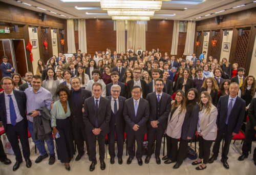 2025年10月20日,驻意大利使馆举办“捍卫国际秩序、完善全球治理”中国主题日活动。驻意大利大使贾桂德、前意外交部政治安全总司长费拉拉、意忠利保险集团负责人迪菲利普、安莎社副社长波利发言,意政府和企业界代表及罗马高校学生近200人出席,活动以英文进行。