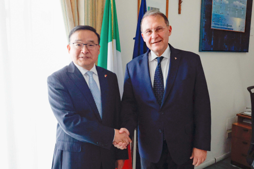 2025年11月27日,驻意大利大使贾桂德辞行拜会意第一副外长齐里耶利。