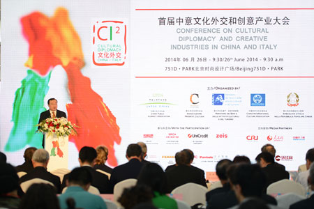 2014年6月26日,中国公共外交协会同意大利文化优先协会在北京联合举办首届中国—意大利文化外交和创意产业大会。中国公共外交协会会长李肇星、意大利文化优先协会主席弗朗西斯科•鲁泰利、意大利驻华大使白达宁以及来自中意两国文化、企业、媒体、学术界的人士200余人与会。外交部部长助理刘建超应邀出席并致辞。
