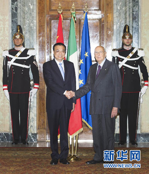 当地时间10月14日,国务院总理李克强下午在罗马总统府会见意大利总统纳波利塔诺。