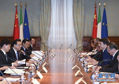 伦齐完全赞同李克强对进一步深化中意关系的建议,表示意方高度重视对华关系,愿全面扩大两国经贸、相互投资、能源、科技、人文等领域交流合作。意方欢迎中方积极参与2015年米兰世博会,期待中国馆精彩、成功。意方欢迎更多中国企业来意投资、更多中国游客来意观光,将为此提供便利。意方支持欧中和欧亚加强合作,将在重大国际事务上与中方保持密切沟通与协调。