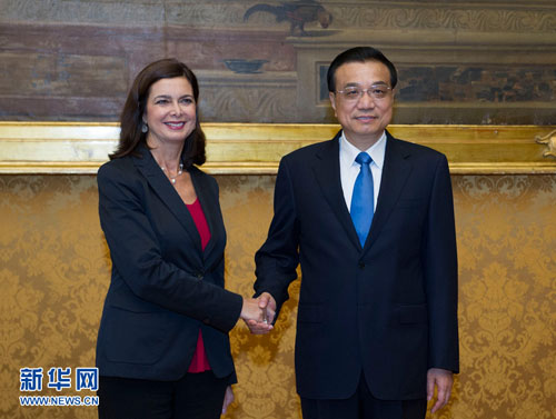 当地时间10月15日上午,国务院总理李克强在罗马会见意大利众议长博尔德里尼。