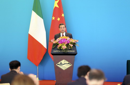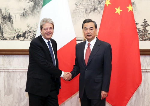 王毅表示,中意全面战略伙伴关系在双方共同努力下全方位发展,投资与创新合作快速增长,旅游与人文交流更加活跃。中方愿同意方一道,以今年两国建交45周年为契机,巩固传统友好,推进各领域务实合作。进一步发挥中意政府委员会的作用,推动双边关系迈上新台阶。
