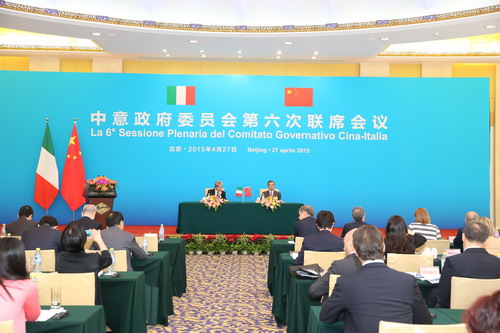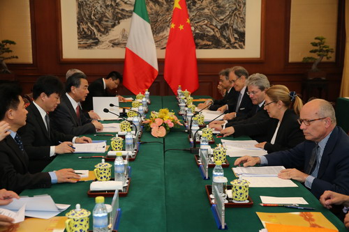 2015年4月27日,外交部长王毅在北京与来华进行正式访问的意大利外交与国际合作部长真蒂洛尼举行会谈。