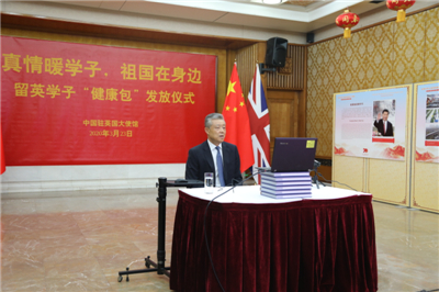 很高兴在这个特殊时期与大家以这种特殊的方式见面。今天,我们在中国驻英国大使馆举行一场特殊的活动:向留英学子发放“健康包”。