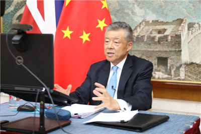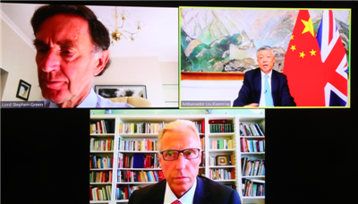 中英是国际抗疫合作的重要伙伴。习近平主席与约翰逊首相一个多月来两次通电话,共同传递了携手战胜疫情的坚定决心。中英正加强防疫信息分享和经验交流,加强科研攻关合作。中英两国都坚定支持多边主义,支持世卫组织在全球抗疫中发挥重要作用,支持加强在二十国集团框架内的抗疫合作,推动完善全球卫生治理。在这个抗击疫情的重要时刻,中英要展现担当,守望相助,排除杂音和干扰,为双方合作增加正能量,为全球公共卫生安全做出新贡献。我相信,疫情过后,中英关系将更加成熟、强劲,双方合作将更加广泛、深入,两国人民友谊将更加牢固、持久!