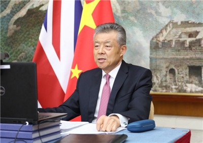 2020年5月4日,驻英国大使刘晓明出席“弘扬爱国精神·绽放战疫青春”在线座谈会并讲话,使馆青年馆员及驻英中资机构中方青年员工、留学生、青年教师、青年华侨等200余名青年代表连线参加。