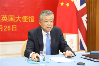 2020年5月26日,驻英国使馆与广东省共同举行“风雨同舟 共克时艰”慰问旅英同胞视频连线交流会,驻英国大使刘晓明、广东省政协副主席袁宝成、中国工程院院士钟南山、广东省欧美同学会会长王珣章、驻曼彻斯特总领事郑曦原、驻爱丁堡总领事马强、驻贝尔法斯特总领事张美芳及在英留学生、华侨华人、中资机构代表约300人连线参加。
