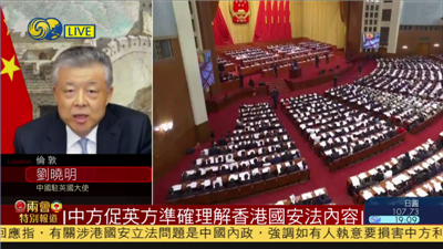 2020年5月27日,驻英国大使刘晓明接受香港凤凰卫视资讯台《华闻大直播》节目连线直播专访,就香港特区维护国家安全立法、疫情下的中国外交政策及中英关系介绍情况、阐明立场。采访实录如下: