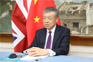 2020年5月29日,驻英国大使刘晓明应邀在线参加英国中国商会和英中贸易协会联合举办的“中英投资高层圆桌对话”,并发表题为《坚定信心,加强合作,开辟新局》的主旨演讲。英国国际贸易部国务大臣格林姆斯通勋爵、英国中国商会会长方文建、英中贸协主席古沛勤爵士以及英国中国商会22家理事单位负责人以及英中贸易协会有关负责人等近50人连线参加此次活动。刘大使与格林姆斯通国务大臣共同回答了企业关心的问题。