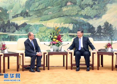2018年10月16日,国家主席习近平在人民大会堂会见英国四十八家集团俱乐部主席佩里。