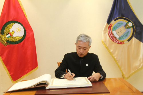 2025年11月27日,驻阿联酋大使张益明应邀为阿联酋国防学院第十三批学员授课。国防学院院长伊萨少将出席,近80位青年学员参加。