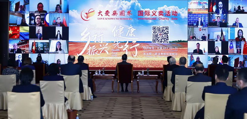 2021年12月18日,“大爱无国界——乡村振兴,健康先行”国际义卖活动开幕式在北京举行。国务委员兼外长王毅和夫人钱韦,外交部党委书记齐玉、副部长乐玉成等外交部部领导,以及160余位外国驻华使馆、国际组织驻华机构、有关企业代表等以线上线下相结合的方式出席。