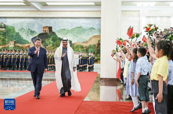 2024年5月30日下午,国家主席习近平在北京人民大会堂同来华国事访问并出席中国—阿拉伯国家合作论坛第十届部长级会议开幕式的阿联酋总统穆罕默德举行会谈。