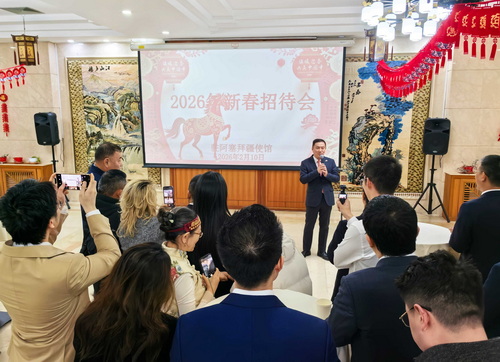 2026年2月10日,驻阿塞拜疆使馆举行2026年新春招待会,驻阿塞拜疆使馆临时代办丁涛出席并致辞,在阿华侨华人、中资机构、孔子学院及留学生代表等百余人共迎新春佳节。