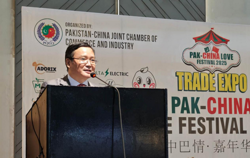 2025年10月18日,驻拉合尔总领事赵世人应邀出席巴中工商联在拉合尔展览中心举办的“中巴情˙嘉年华”博览会开幕式。旁遮普省财政部长拉赫曼、巴联邦投资委员会辅秘艾哈迈德、巴前国家安全顾问詹朱亚、巴中工商联主席胡赛因等各界400多人参加。
