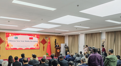 2026年1月29日,驻卡拉奇总领馆举办2026年媒体新春招待会,驻卡拉奇总领事杨云东出席并致辞,领区主流媒体代表60余人参加。