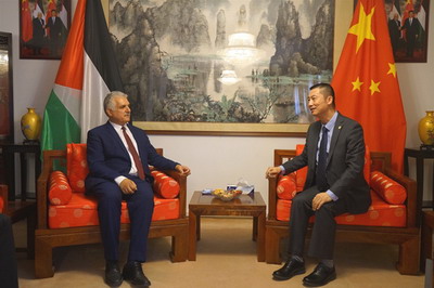 2019年10月27日,驻巴勒斯坦办事处主任郭伟会见巴勒斯坦企业与创新部长萨阿达维。