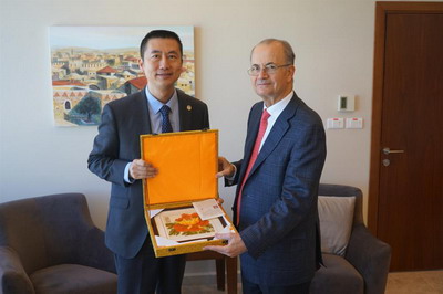 2019年11月4日,驻巴勒斯坦办事处主任郭伟会见巴国家投资基金主席穆斯塔法。