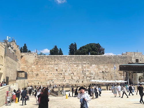 穿过大马士革门,便是熙熙攘攘的穆斯林集市,宣礼声在空中回荡;走上耶稣受难的“苦路”,圣墓教堂的唱诗声在穹顶下回响;再前行不远,便抵达哭墙,犹太教徒贴壁祈祷,摇动身躯,神情专注。而在哭墙的上方,耸立着阿克萨清真寺与金顶清真寺。