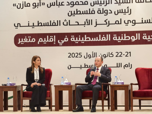 2025年12月21日,驻巴勒斯坦办事处主任曾继新出席巴解组织研究中心年会,在“世界如何看待巴勒斯坦的未来”分论坛发言。巴总理穆斯塔法在开幕式致辞。