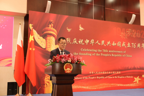 2025年9月21日,驻巴林使馆举办招待会,热烈庆祝中华人民共和国成立76周年。驻巴林大使倪汝池、巴工商大臣阿卜杜拉、旅游大臣法蒂玛等政府官员及议会、协商会议代表,多国驻巴使节,在巴中资机构、孔院教师及华侨华人代表等近600人出席。
